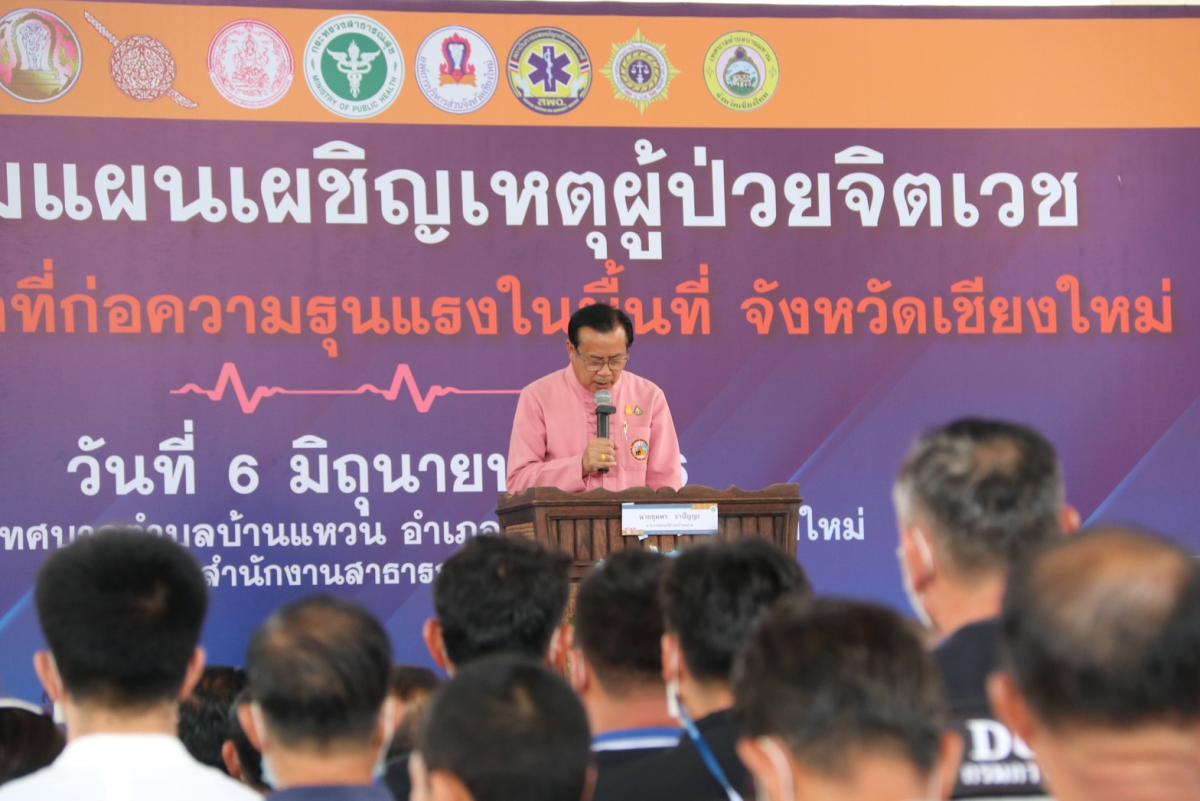 วันอังคารที่ 6 มิถุนายน 2566 เวลา 08.30-16.30 น. เทศบาลตำบลบ้านแหวน ร่วมกับ กลุ่มงานควบคุมโรคไม่ติดต่อ สำนักงานสาธารณสุขจังหวัดเชียงใหม่ ศูนย์สุขภาพจิตที่ 1 เชียงใหม่ ฝ่ายปกครองอำเภอหางดง โรงพยาบาลหางดง สาธารณสุขอำเภอหางดง โรงพยาบาลสวนปรุง สำนักงานตำรวจภูธรจังหวัดเชียงใหม่ และภาคีเครือข่ายทุกภาคส่วนในพื้นที่จังหวัดเชียงใหม่ และผู้แทนที่เกี่ยวข้องงานสุขภาพจิตและยาเสพติดจากภาคเหนือตอนบน ได้ร่วมการซ้อมแผนการเผชิญเหตุผู้ป่วยจิตเวช/ผู้ที่ใช้สารเสพติดที่ก่อให้เกิดความรุนเเรงในพื้นที่ที่ครอบคลุมช่วงก่อนเกิดเหตุ เกิดเหตุและหลังเกิดเหตุ กรณีผู้ป่วยจิตเวชและยาเสพติด คลุ่มคลั่ง ใช้อาวุธปืนจี้ภรรยาเป็นตัวประกัน ณ เทศบาลตำบลบ้านแหวน โดยการที่ทุกภาคส่วนได้มาร่วมกันมีบทบาทที่สำคัญในการร่วมสร้างสังคมที่ปลอดภัย ในการพัฒนาแนวทางการดำเนินงาน ระบบดูแลผู้ป่วยจิตเวชที่มีความเสี่ยง สูงต่อการก่อความรุนเเรง สร้างแนวทางการช่วยเหลือผู้ป่วยจิตเวชและยาเสพติดได้อย่างรวดเร็ว มีประสิทธิภาพ ลดความสูญเสียทั้งทางด้านร่างกาย ทรัพย์สิน ด้วยพลังความร่วมมือของคนทุกภาคส่วนสามารถช่วยกันดูแลคนในชุมชนให้มีการคุ้มครองดูแลในสภาพแวดล้อมแห่งความรักและความเข้าใจ สร้างสังคมที่ปลอดภัย ลดปัญหาความรุนแรงในสังคม โดยใช้กระบวนการชุมชนที่เข้มเเข็งอย่างยั่งยืนร่วมกันในชุมชนอย่างยั่งยืน